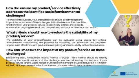 product/service targets waste reduction, measure the amount of waste reduced. If it is health-