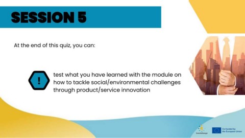 SESSION 5 At the end of this quiz, you can: test what you have learned with the module on ! how to tackle social/environmental challenges through product/service innovation