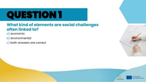 QUESTION 1 What kind of elements are social challenges often linked to? a) economic b) environmental c) both answers are correct