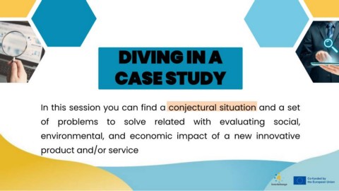 DIVING IN A CASE STUDY In this session you can find a conjectural situation and a set of problems to solve related with evaluating social, environmental, and economic impact of a new innovative product and/or service